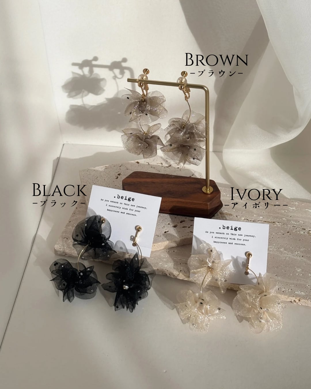 全てのアイテムをハンドメイドでお作りしております。既製品に比べ繊細な作りですので、強い力を加える等、扱いにはご注意ください。