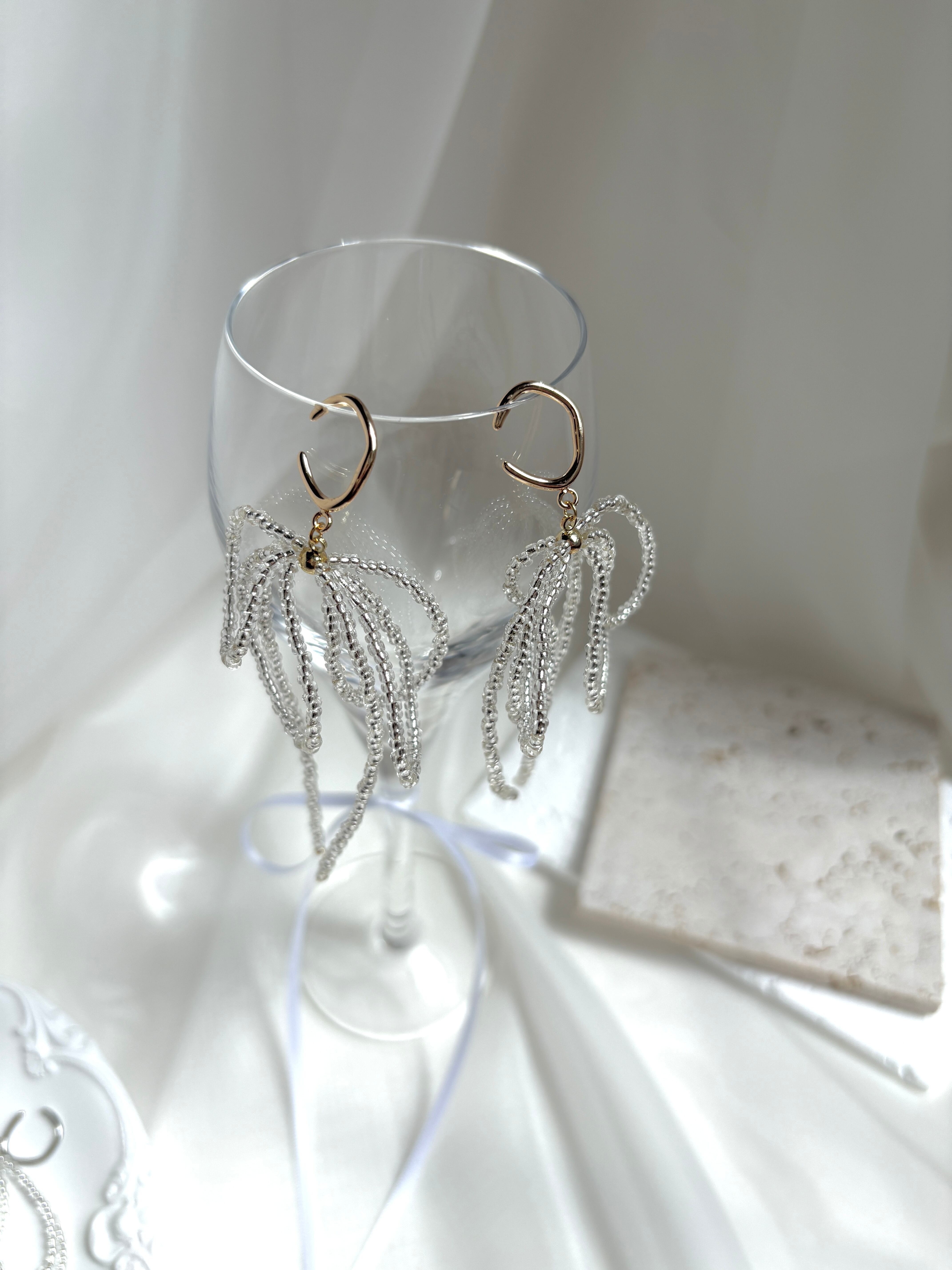 透明なビーズがきらめく