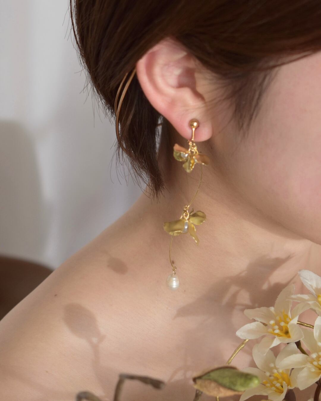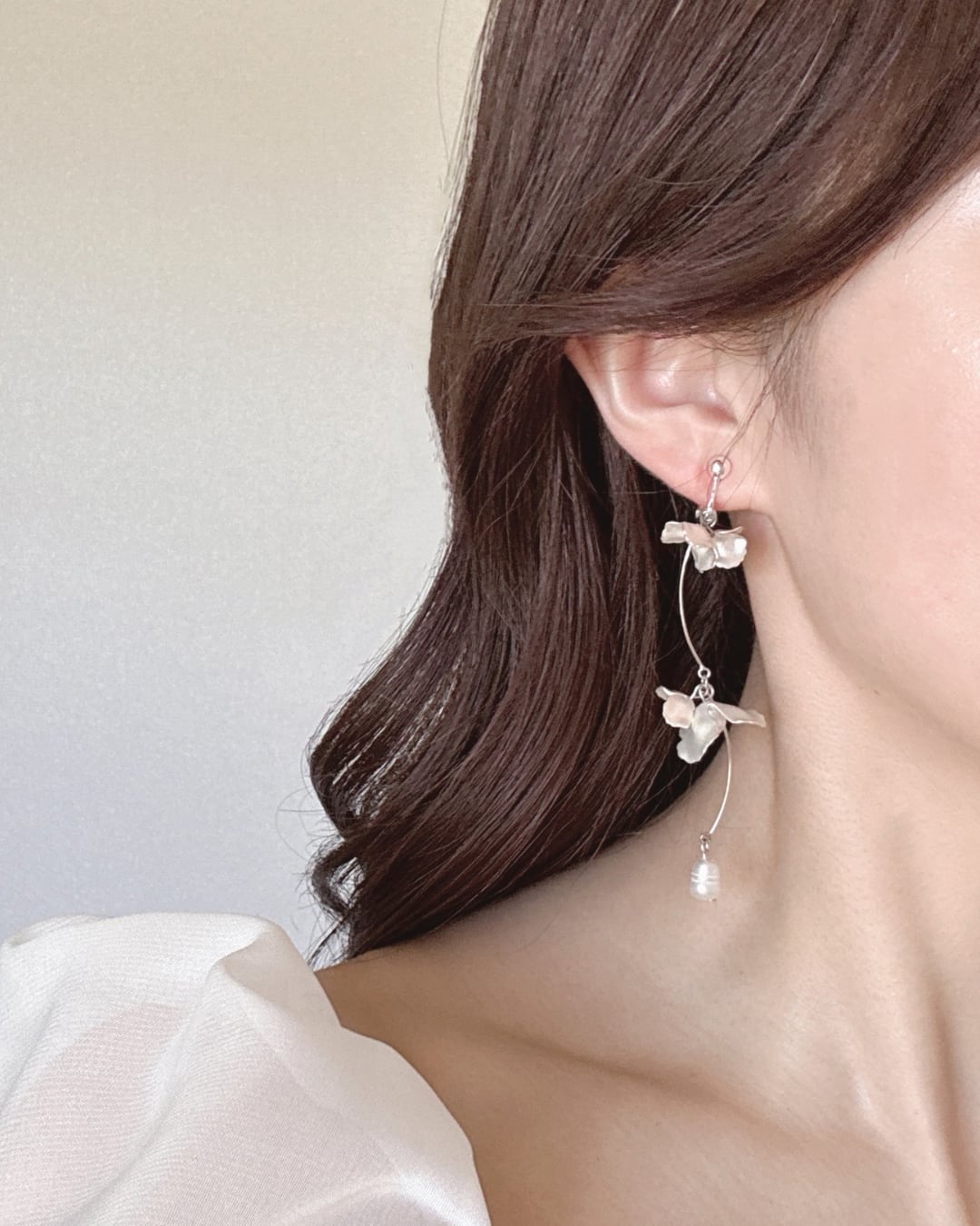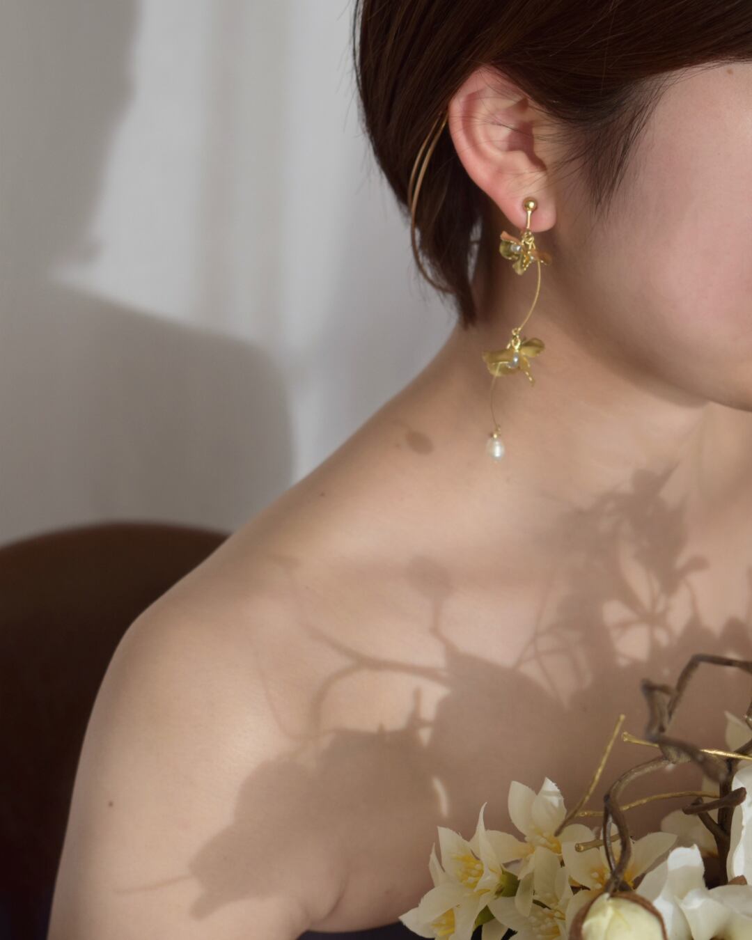 マットな質感のフラワーと淡水パールが