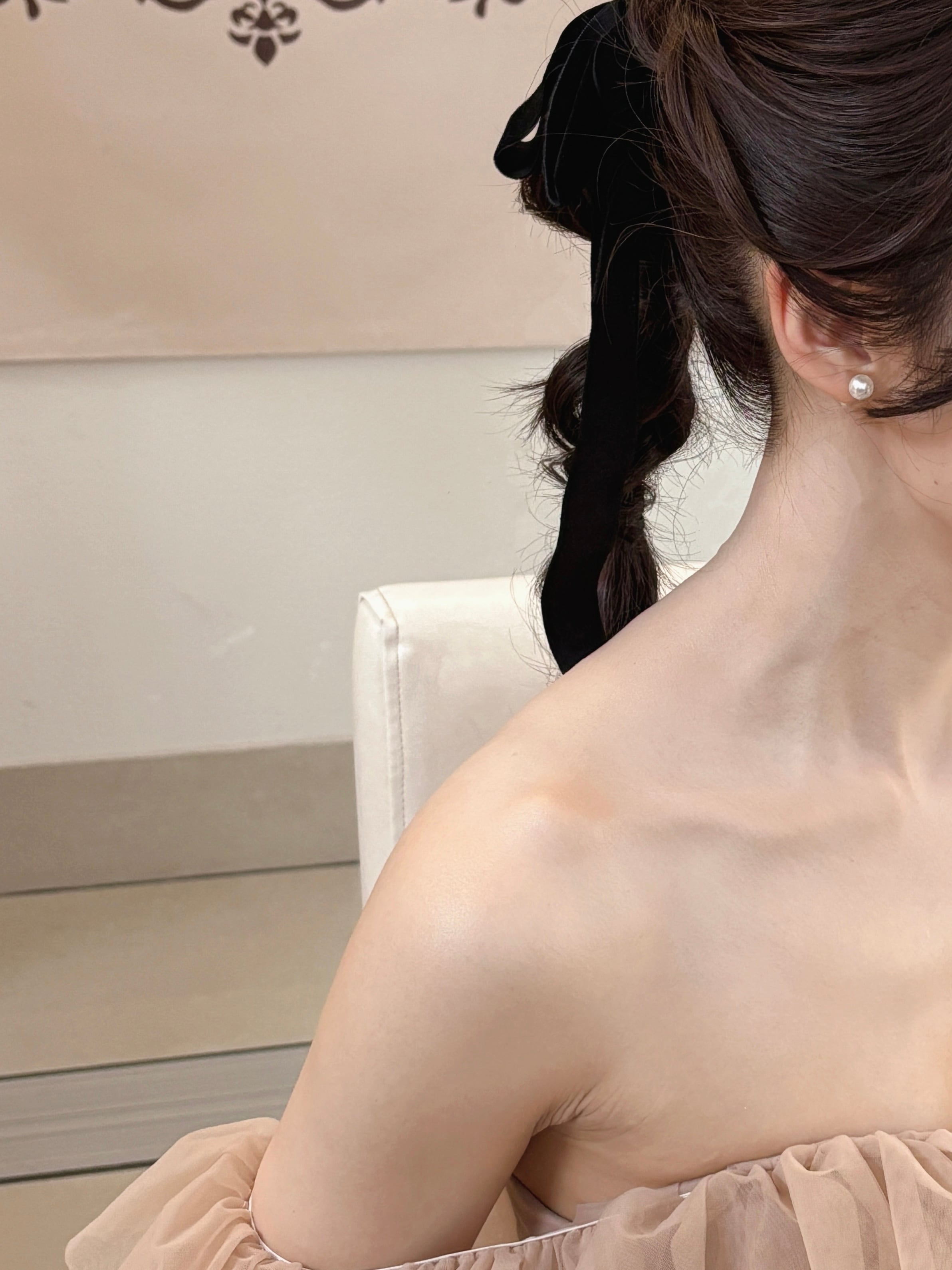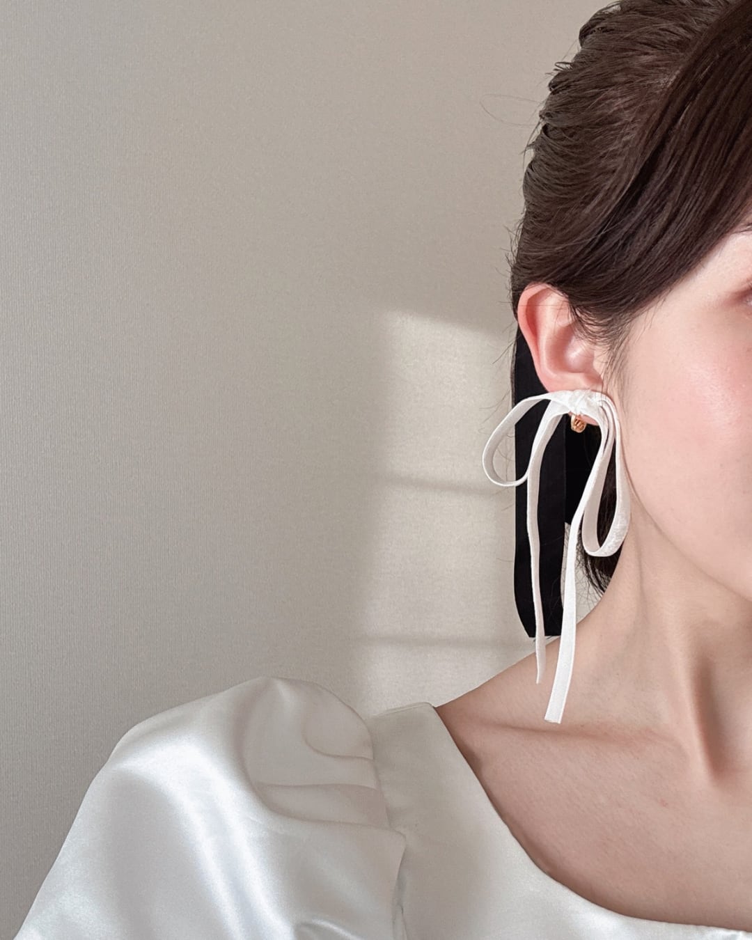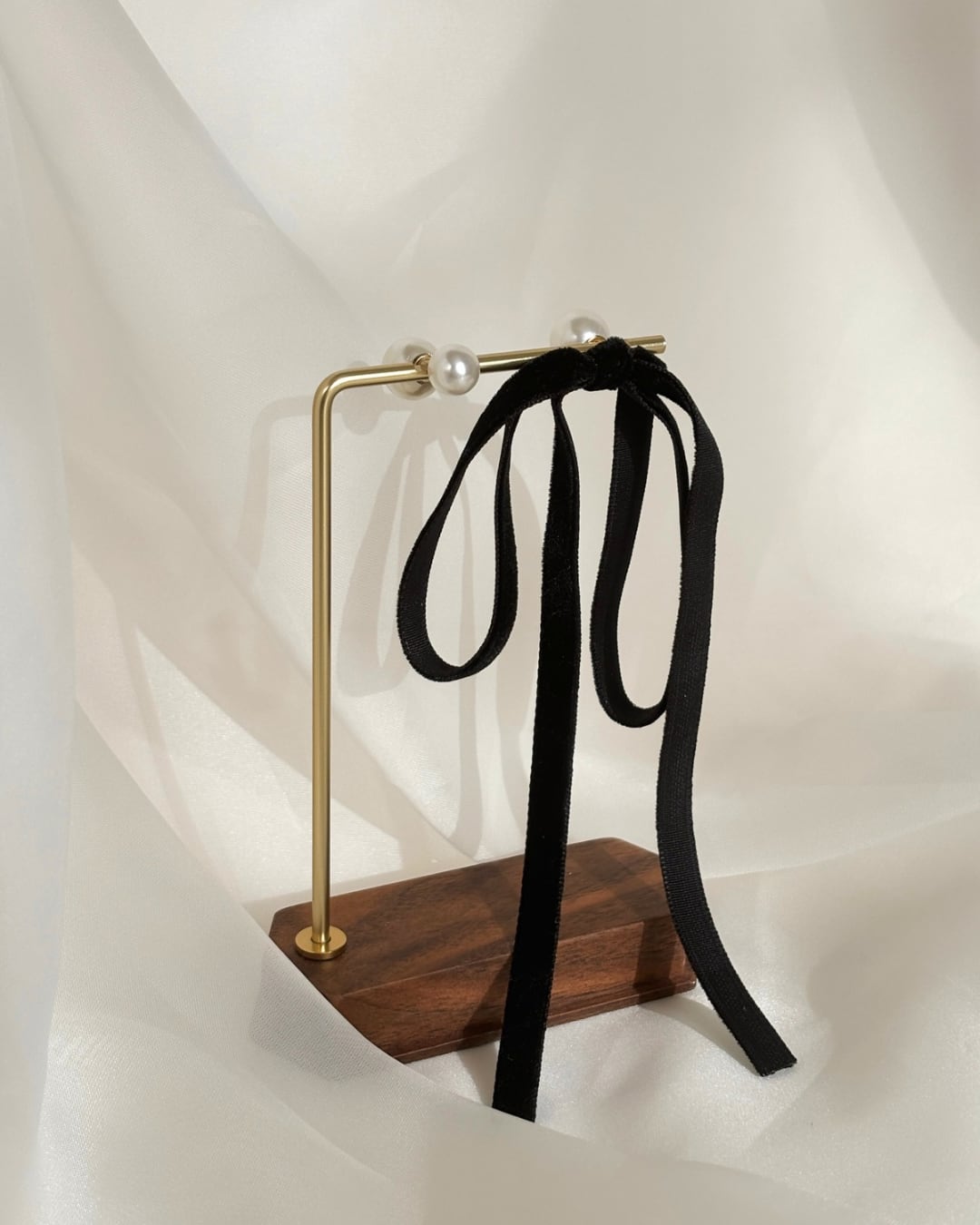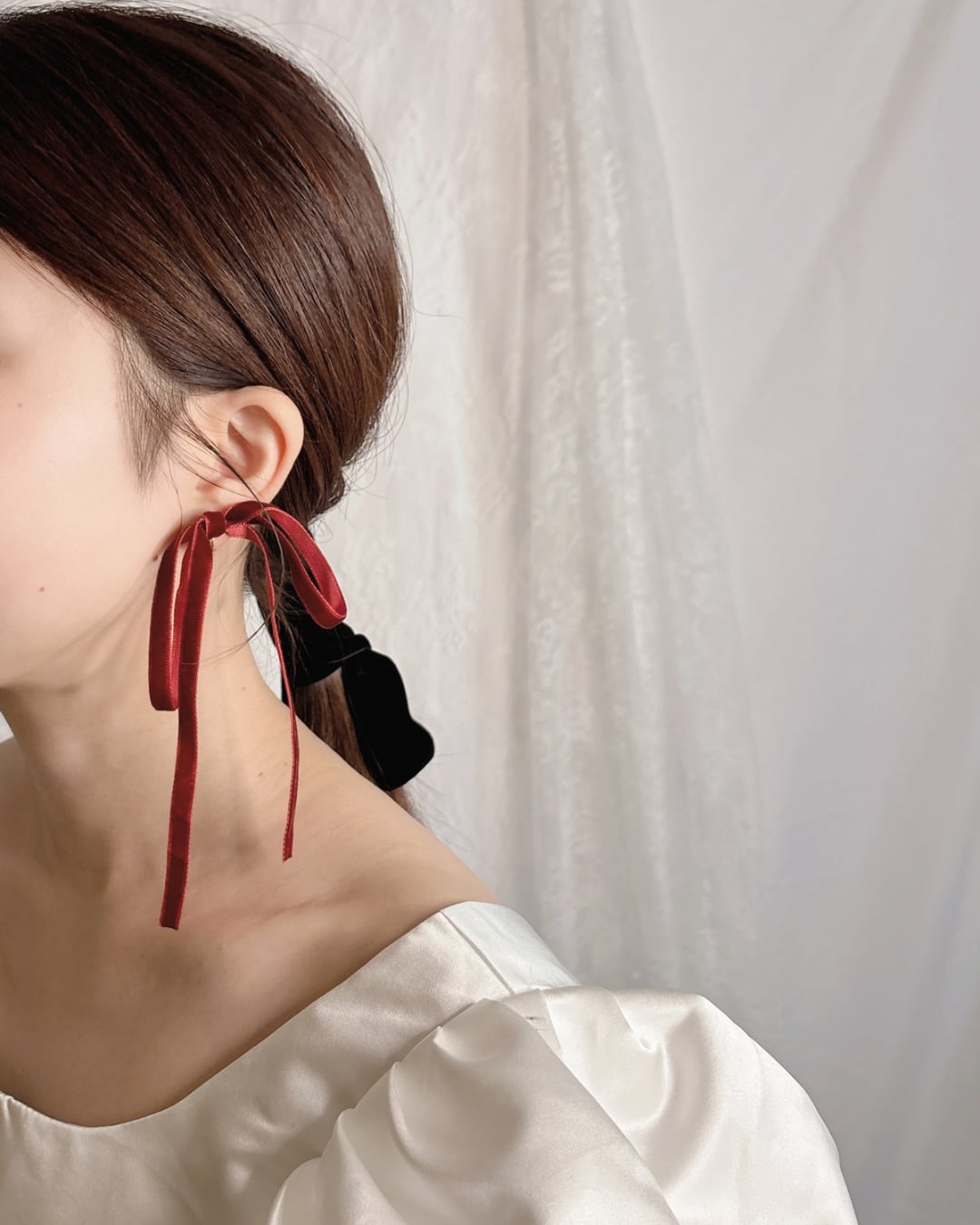 左耳には、ゆったりと流れるように垂れ下がるベロアリボンを♡
