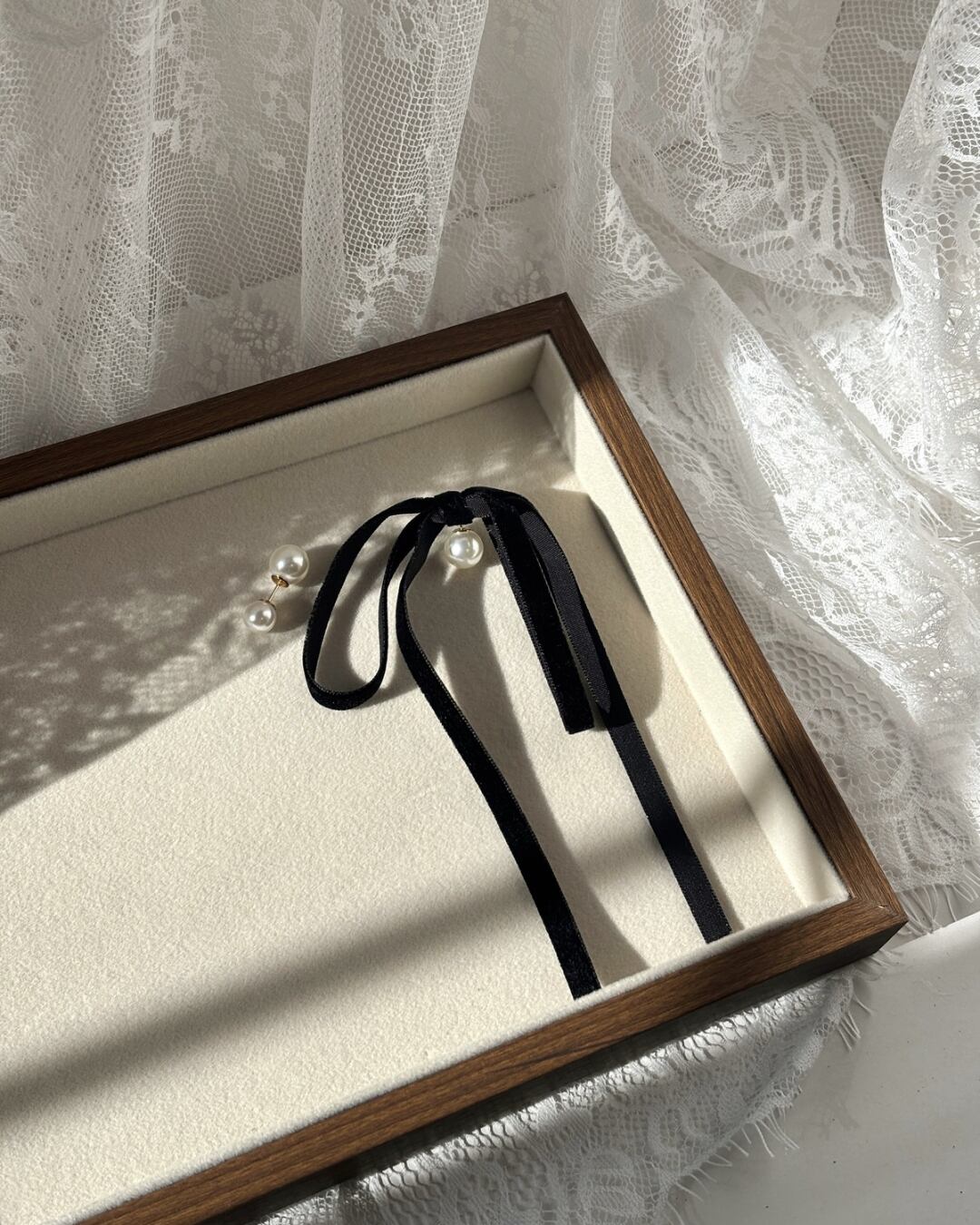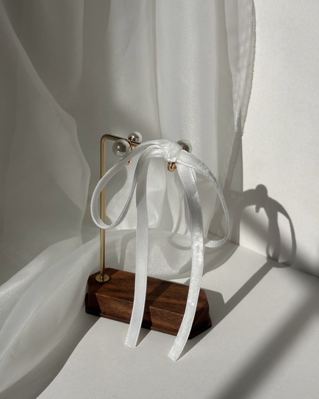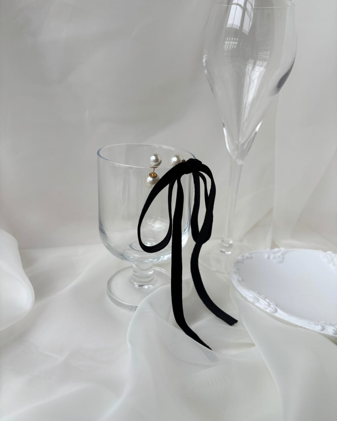 片耳はベルベットリボンで甘さを控えめに