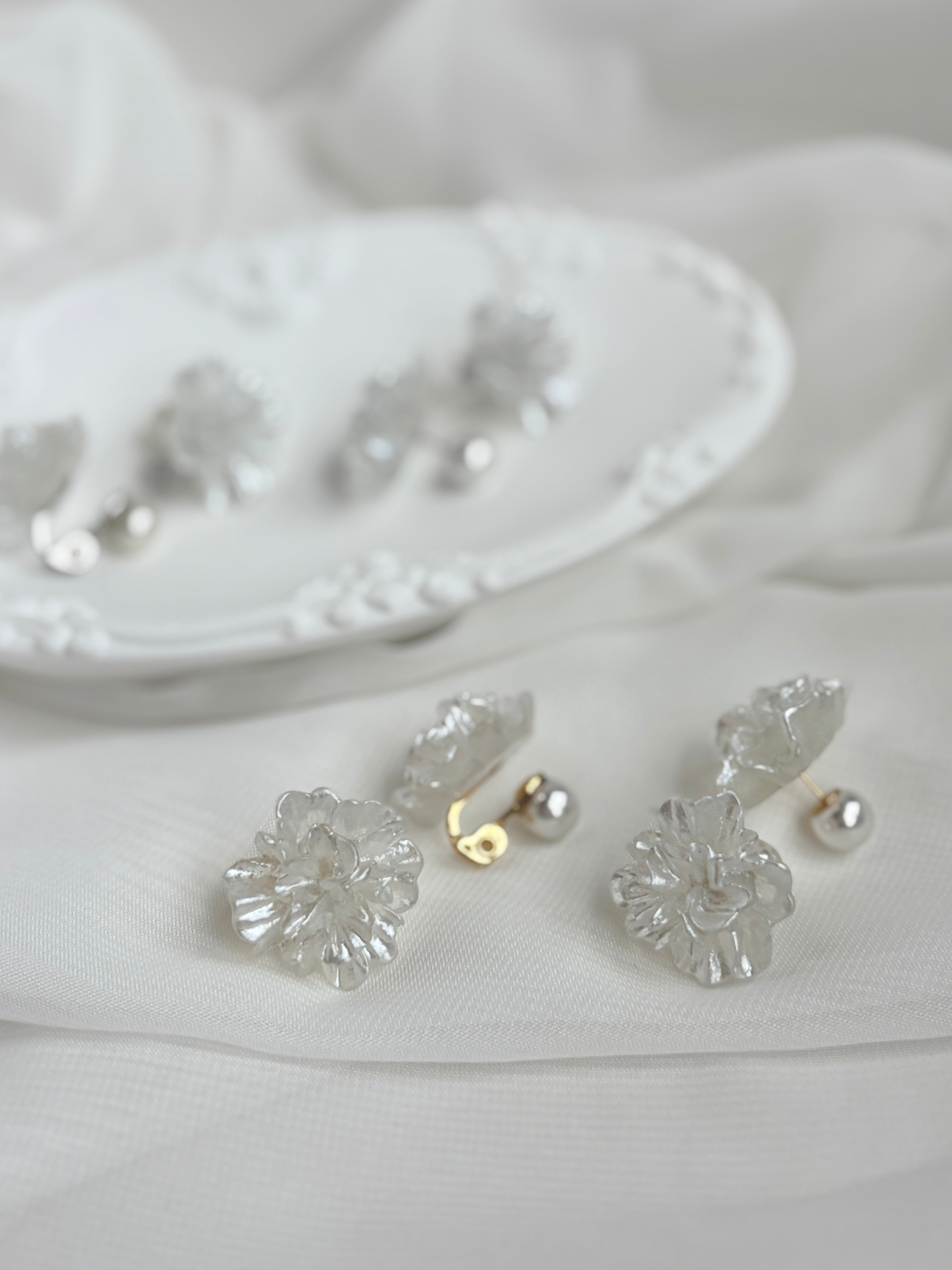 全てのアイテムをハンドメイドでお作りしております。既製品に比べ繊細な作りですので、強い力を加える等、扱いにはご注意ください。